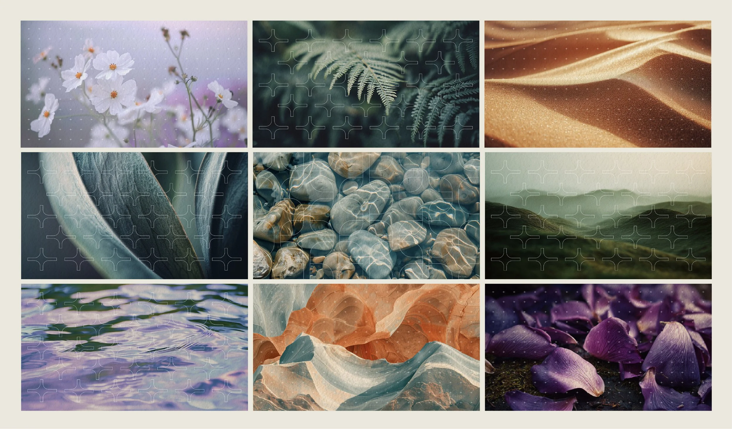 Where the generic webpage imagery applies the new brand patterns and uses more landscape style imagery, the blog page images display closeups of organic objects instead. This style reflect the idea of focusing on one subject matter at ones, just like the feature articles do. The patterns have also been left out of these images to avoid an outcome that looks too busy, as well as to strengthen the use of the pattern by adding rules around it.